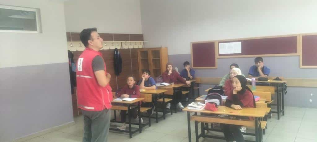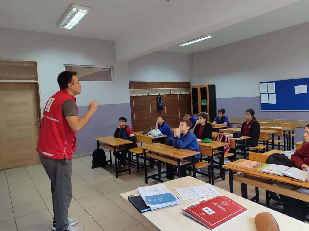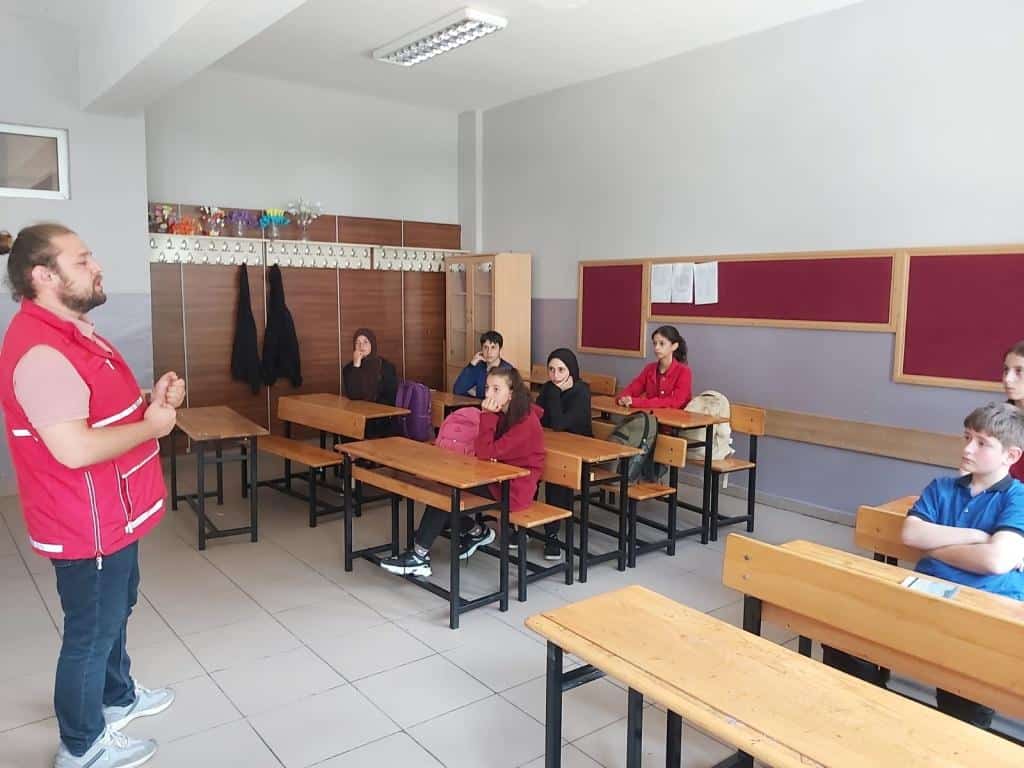 Türk Kızılayı Trabzon Şubesi, toplumun afet bilinciyle yetişmesini sağlamak ve gönüllülük ruhunu çocuk yaşta aşılamak amacıyla yürüttüğü çalışmalar kapsamında Okulumuz Tevfik İleri İmam Hatip Ortaokulunda "Afet Bilinci ve İklim Değişikliği Semineri" verildi. Seminerde, afetlere karşı hazırlıklı olma, doğru müdahale yöntemleri ve iklim değişikliğinin etkileri hakkında bilgiler verildi. Etkinlik boyunca çocuklara Türk Kızılayı'nın tarihçesi, misyonu ve yürüttüğü insani yardım faaliyetleri hakkında bilgilendirmeler de yapıldı.